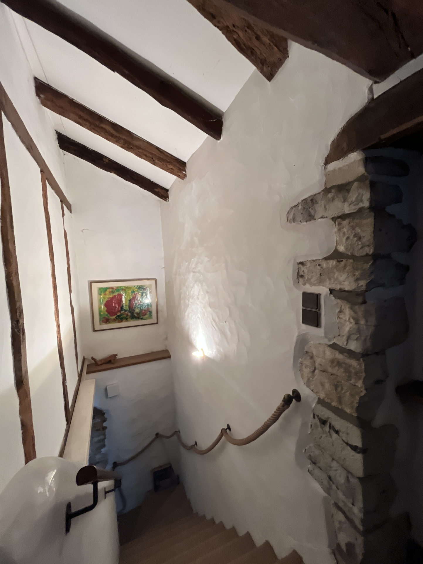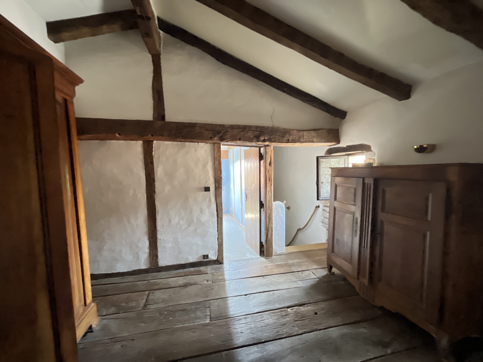 Le bien est équipé du tout-à-l’égout, chauffage électrique, charpente apparente, matériaux anciens et pierres locales. Des travaux sont à prévoir pour améliorer le confort général et stabiliser les fondations. Le terrain est piscinable.