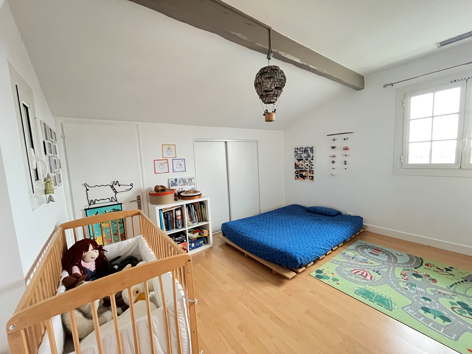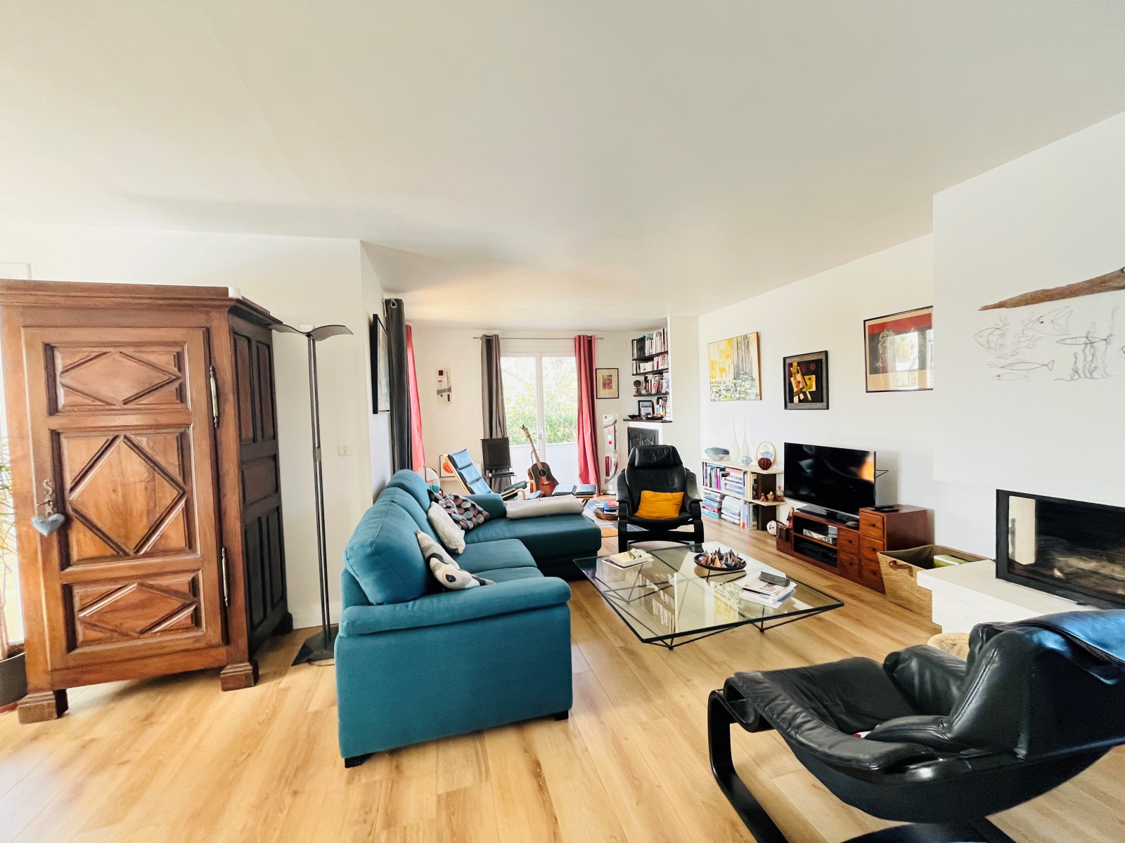 Au rez-de-chaussée, vous découvrirez une entrée avec placard et toilettes séparées. L'espace de vie de 65 m² se compose d'un séjour lumineux, d'un salon chaleureux et d'une cuisine ouverte entièrement équipée, idéale pour vos moments de convivialité.