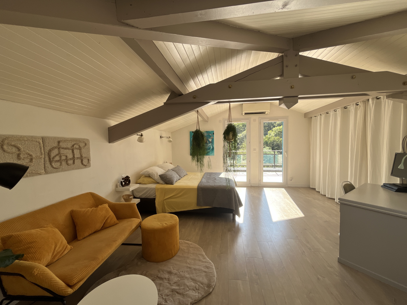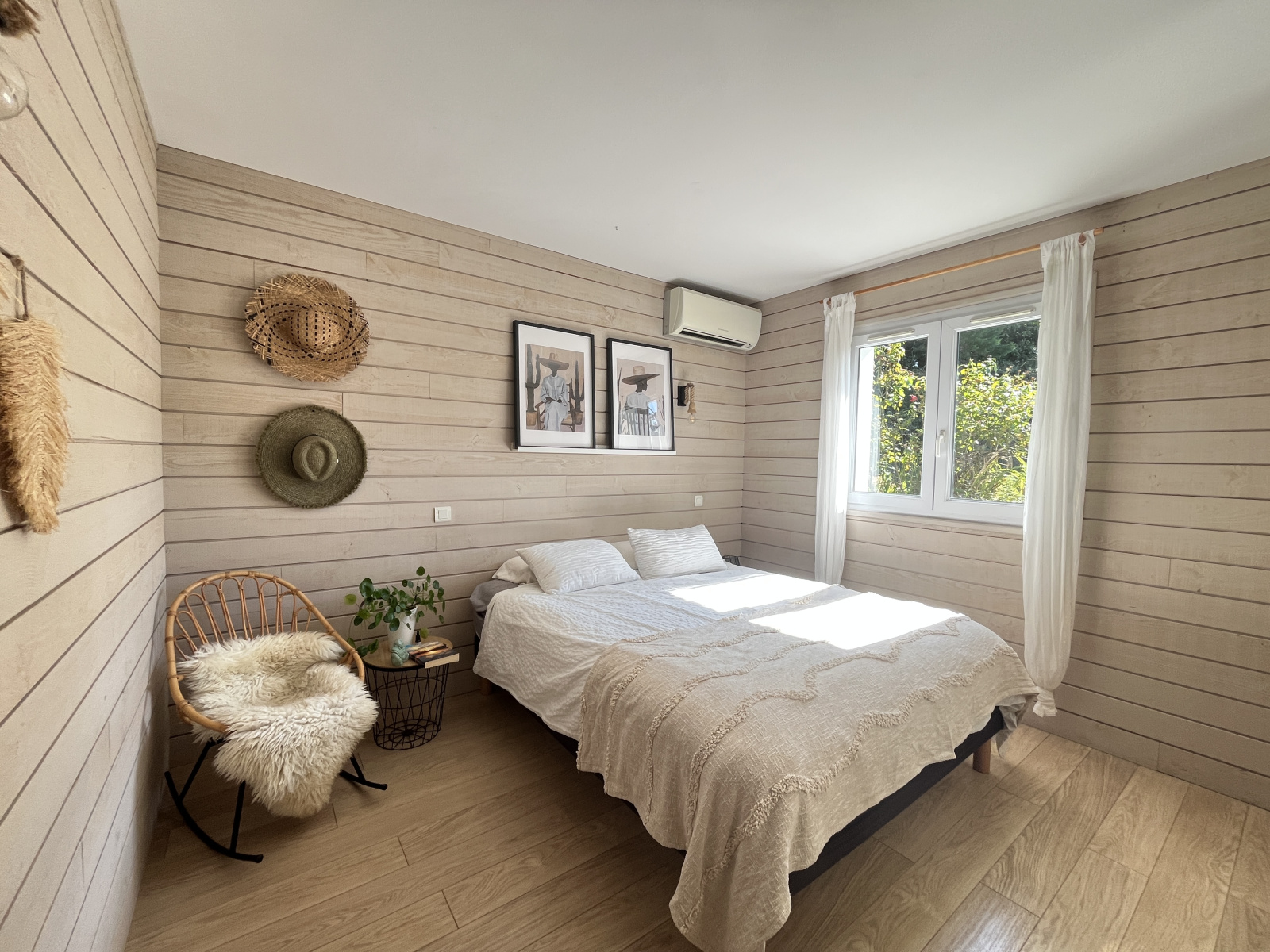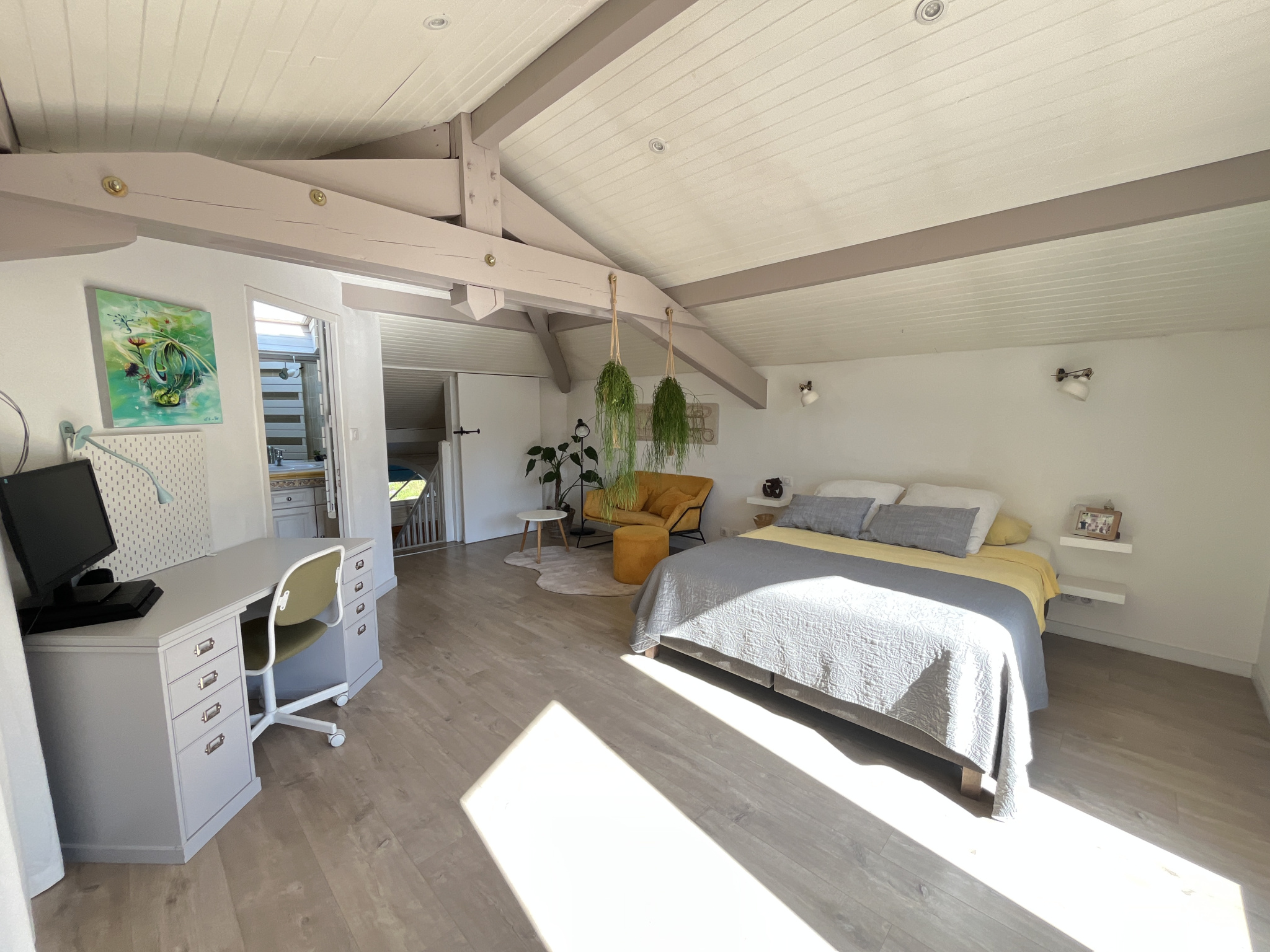 À l’étage, vous découvrirez une magnifique suite parentale avec sa salle d’eau privative et un accès direct à une terrasse surplombant le jardin — un véritable cocon intimiste.