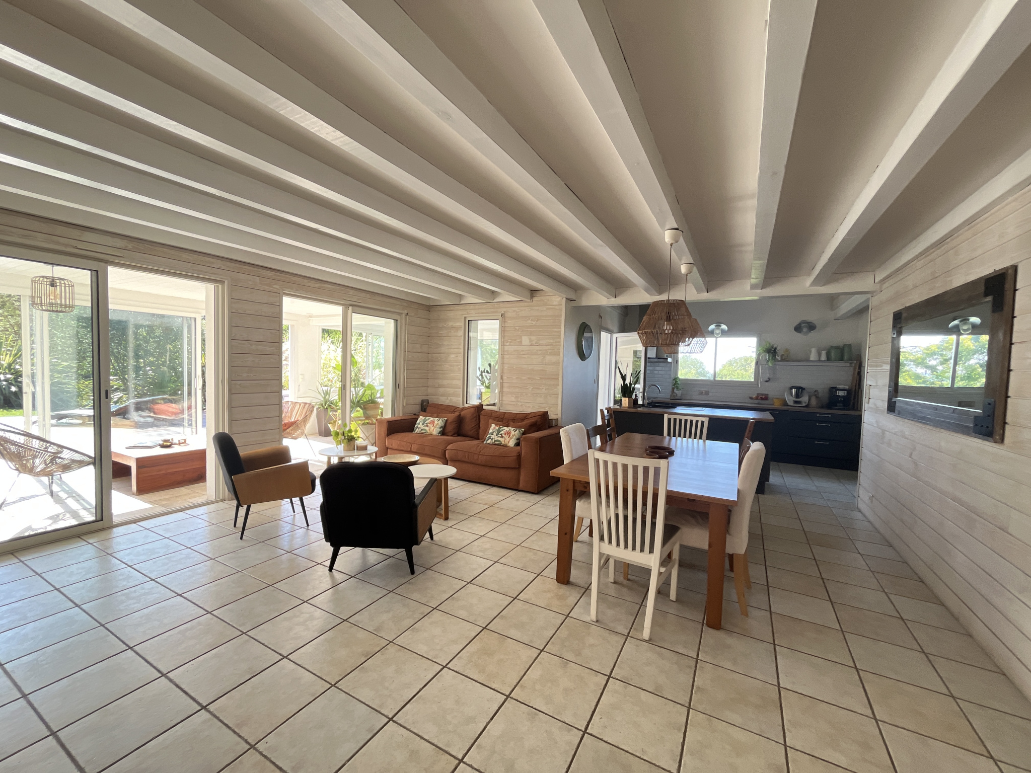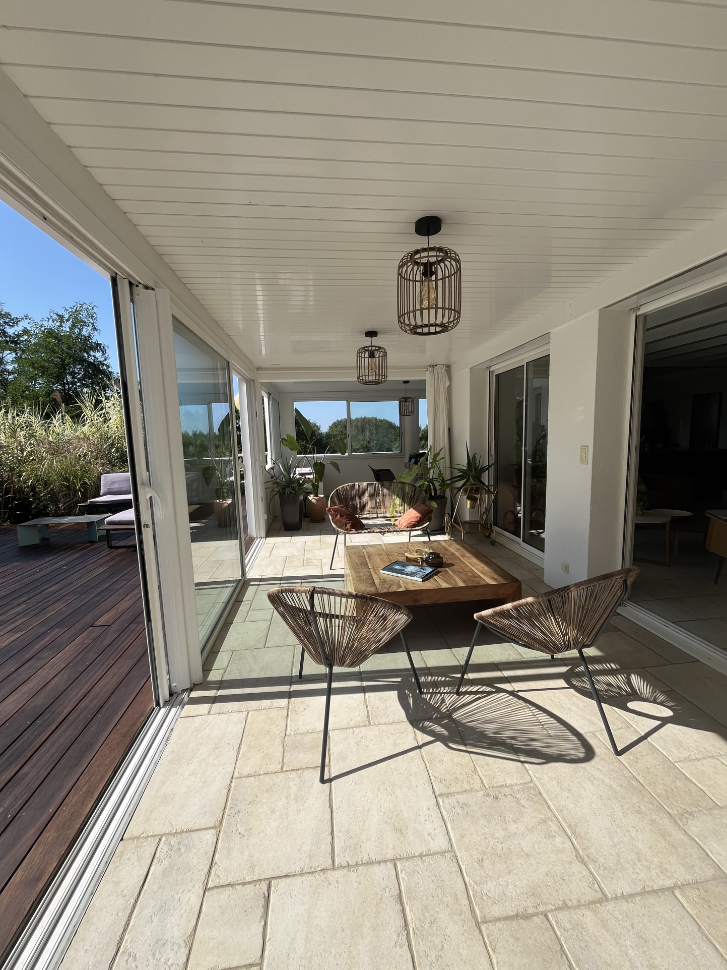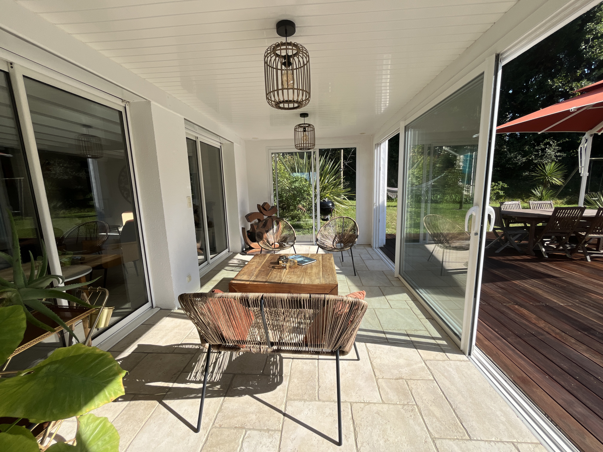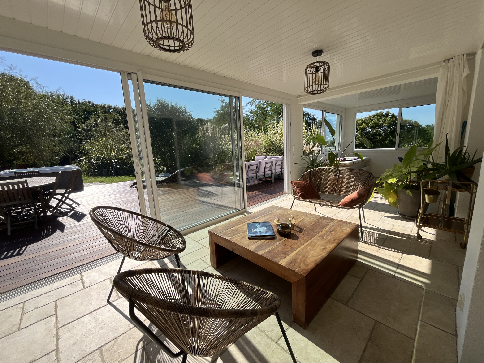 Dès l'entrée, vous serez séduit par un spacieux séjour chaleureux avec son poêle à bois, prolongé par une superbe véranda baignée de lumière, qui s’ouvre sur une belle terrasse en bois avec jacuzzi, parfaite pour profiter des beaux jours.