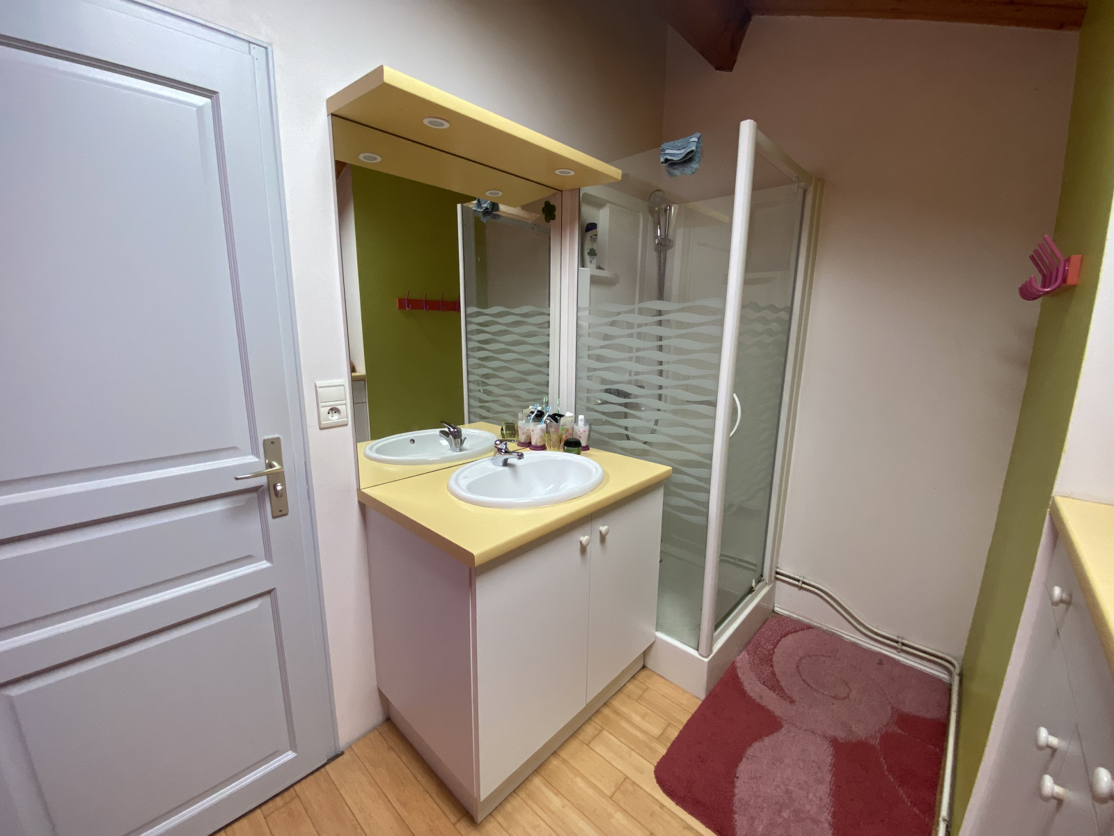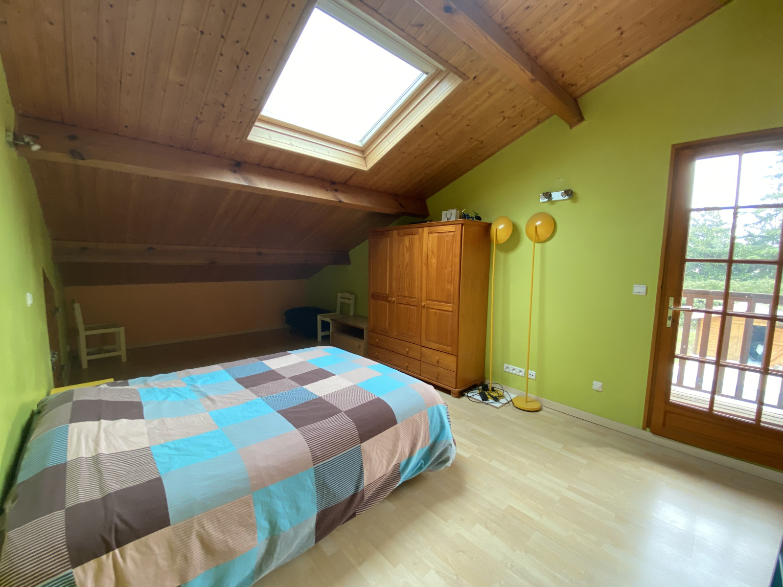 À l'étage, trois généreuses chambres de plus de 20m² chacune, dont deux bénéficient de balcons, ainsi qu'une salle d'eau avec WC, offrent des espaces de repos fonctionnels.